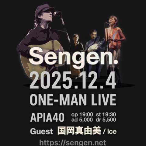 アコースティックポップを提供するSengen.。シンガーソングライターの垣内俊二(Shunji Kakiuchi)を中心に、2014年から東京を拠点に活動開始。Soul&Pop なライブを繰り広げ各地で好評を博す。常に進化していく演奏陣は、Vo/A.Guitar:垣内俊二、Chorus/A.Guitar:野呂和稔、Drums:小林祐一、Chorus/Vo:高木貴子、Bass:志水啓一 *小編成、ソロ有。2025年4月 マリンダイビングフェア2025テーマソング「Find Yourself」シングルEP 配信スタート。2022年1stアルバム「歌い伝え響き鳴る」発売、自主企画イベント「未来を唄う」では累計で約800名を動員。2016年9月 Lumit 週間ランキング1位。2016年4月 「mirai (short ver.)」 MV公開。2016年3月 シングル 「mirai」 配信スタート。Shunji Kakiuchi is an Acoustic-Pop singer-songwriter who based in Tokyo. He organize 'Sengen.' is comprised of Vo/A.Gu, Cho/A.Gu, Cajon, Keyboard and Bass. He is almost singing in Japanese but that sounds more than words.